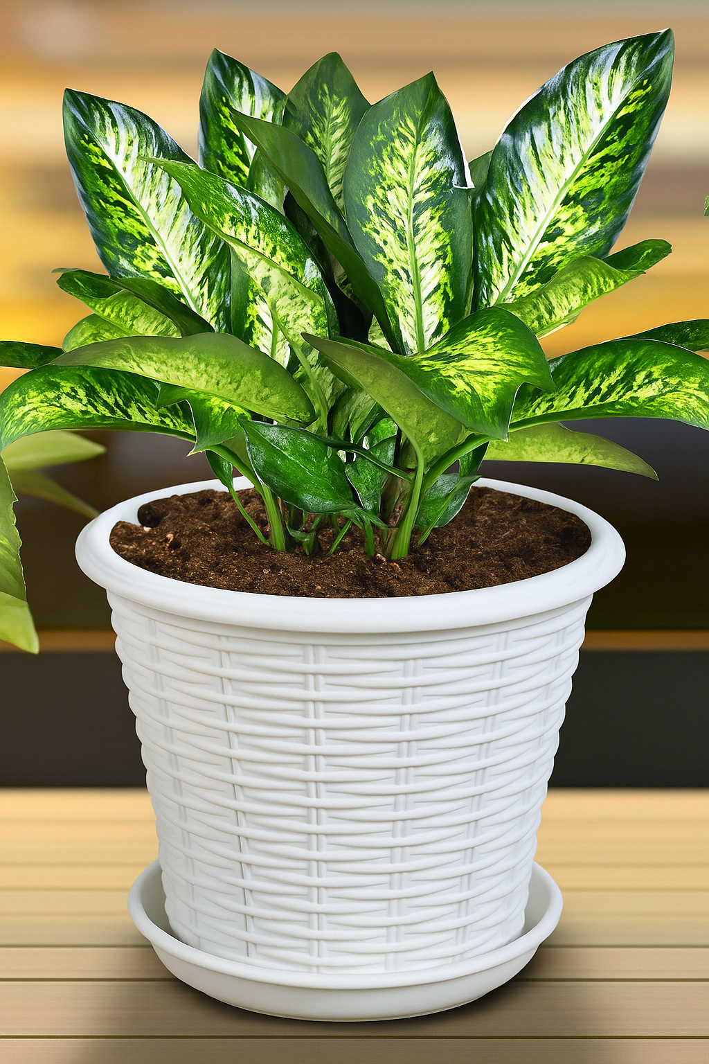 Rattan Flower Tub With Tray 8" Materials: PP Dimension L*W*H: 20.2CMX20.2CMX16.5CM Durable, Economy Price, Excellent Design etc Color: (Light Blue) As given picture.