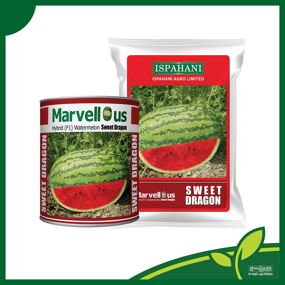 Brix 12-13%Early hybrid varietyDark red fleshAverage fruit weight is 14-15 kgDragon type, elongated roundEach tree holds an average of 2-3 watermelonsDark green strip on greenFruits can be collected within 60-65 days of sowing